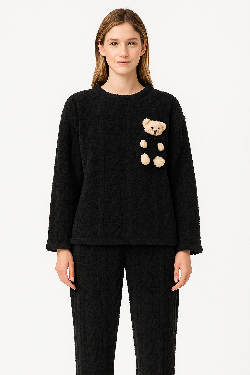 Com esse pijama quentinho e fofinho, você vai se sentir abraçado pelo ursinho no bolso! Além de te manter aquecido, ele ainda vem com um ursinho de brinde. Então não perca a oportunidade de ter uma noite de sono super confortável e divertida!